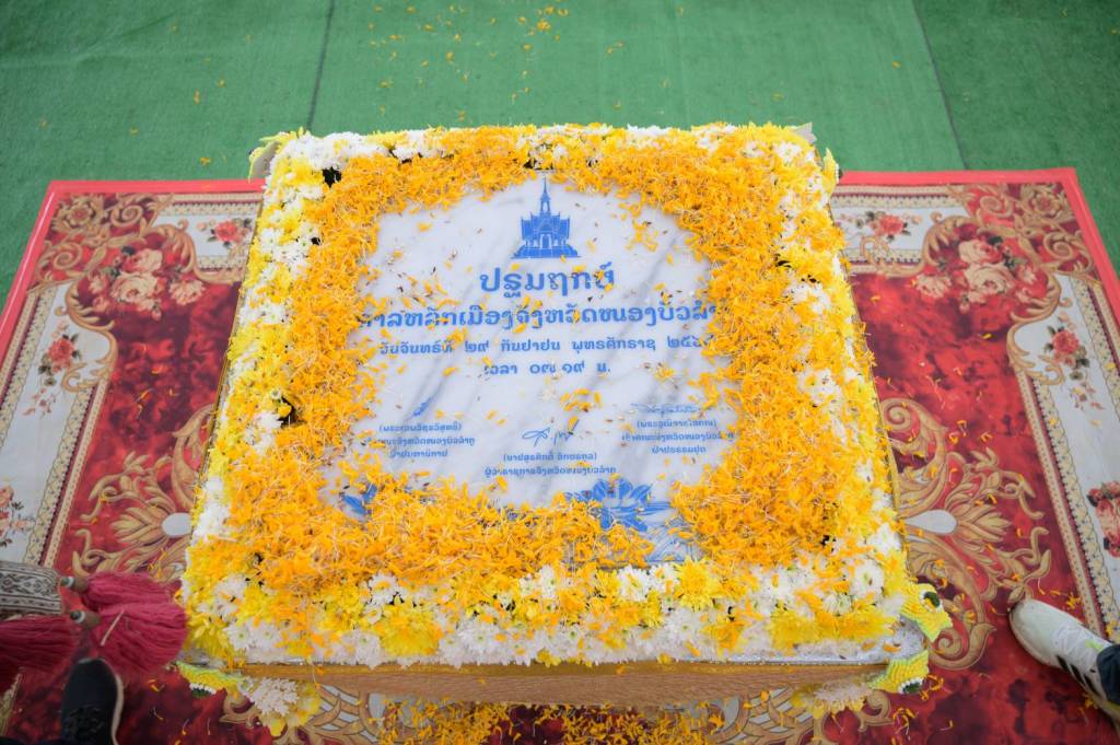 พร้อมด้วยผู้ว่าราชการจังหวัด หัวหน้าส่วนราชการ และแขกผู้มีเกียรติร่วมในพิธี พระสงฆ์เจริญชัยมงคลคาถา เพื่อเป็นการอำนวยอวยพรให้การก่อสร้างสำเร็จลุล่วงไปด้วยดี หลังจากพิธีเจริญพระพุทธมนต์ นายสุรศักดิ์ อักษรกุล ผู้ว่าราชการจังหวัดหนองบัวลำภู ได้นำหัวหน้าส่วนราชการ ข้าราชการ และพุทธศาสนิกชนที่มาร่วมงาน ร่วมกันทำบุญตักบาตรข้าวสารอาหารแห้งแด่พระสงฆ์ทั้ง 33 รูป เพื่อสร้างกุศลและอุทิศส่วนกุศล ซึ่งเป็นประเพณีที่ชาวพุทธปฏิบัติสืบต่อกันมาแต่โบราณ.