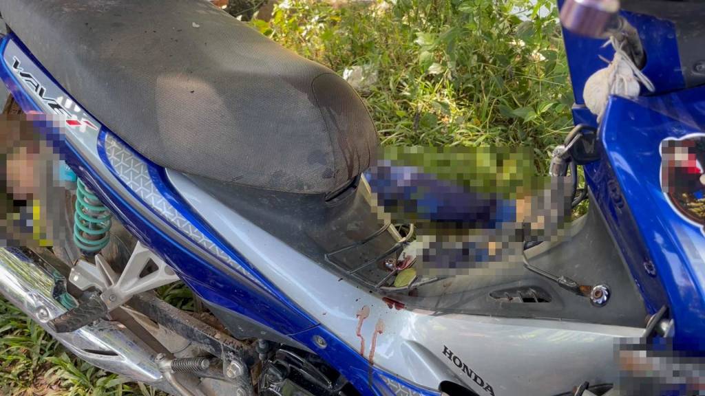 มีรอยเลือดหยดเป็นทาง อยู่ที่เบาะรถมอเตอร์ไซด์ฮ้อนด้าเวฟ สีน้ำเงิน เสียชีวิตมาแล้วไม่ต่ำกว่า