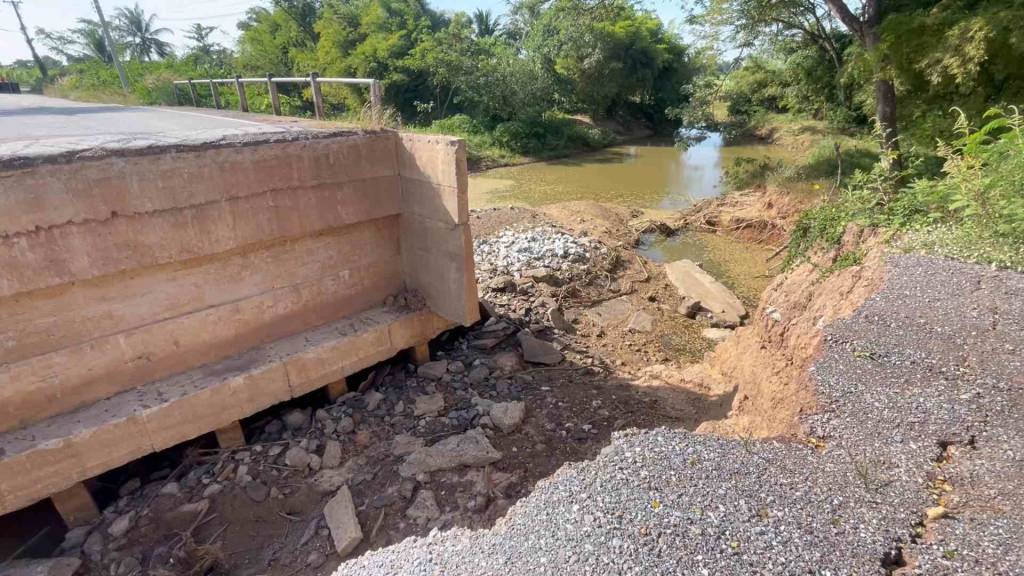คอสะพานได้ขาดทำให้เด็กนักเรียนจะมาโรงเรียน และพี่น้องประชาชนสัญจรไปมาไม่ได้ ต้องใช้เส้นทางที่อ้อมซึ่งเป็นระยะทางไกลกว่าเดิม จากนั้นผู้สื่อข่าวจึงได้เดินทางไปตรวจสอบ จุดที่ได้รับแจ้งเป็นสะพานซึ่งอยู่ท้ายหมู่บ้าน บริเวณคอสะพาน 1 ฝั่งโดนน้ำกัดเซาะพังลงไปมีความลึกเกือบ 20 เมตร และความยาวประมาณ 10 เมตร บริเวณด้านข้างจะเป็นหนองน้ำสาธารณะประโยชน์ของหมู่บ้าน และสะพานดังกล่าวอยู่ห่างจากโรงเรียนยางหลวงพิทยาคมไม่ถึง 50 เมตร