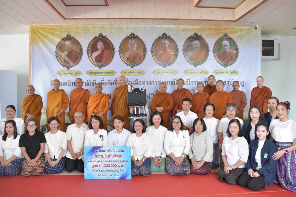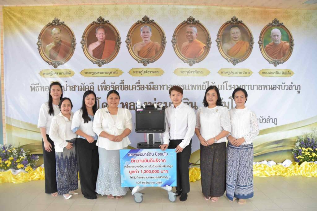 หลวงพ่อมาร์ติน ปิยธัมโม เจ้าอาวาสวัดภูฆ้องทอง ได้แสดงความเมตตาอย่างยิ่งใหญ่ โดยการบริจาคเครื่องตรวจอวัยวะภายใน ให้กับโรงพยาบาลหนองบัวลำภู เครื่องมือนี้จะช่วยให้แพทย์สามารถวินิจฉัยโรคได้อย่างแม่นยำและรวดเร็ว ส่งผลให้ผู้ป่วยได้รับการรักษาที่มีประสิทธิภาพมากขึ้น การบริจาคครั้งนี้ไม่เพียงแต่ช่วยยกระดับคุณภาพการรักษาในชุมชน แต่ยังเป็นแบบอย่างที่ดี ของความมีน้ำใจและการแบ่งปันที่ทุกคนควรเอาเป็นแบบอย่าง และแสดงให้เห็นถึงความมีน้ำใจของหลวงพ่อมาร์ติน ปิยธัมโม เจ้าอาวาสวัดภูฆ้องทอง ที่ต้องการช่วยเหลือผู้อื่นอย่างแท้จริง. เครดิตภาพ/ข่าว โรงพยาบาลหนองบัวลำภู