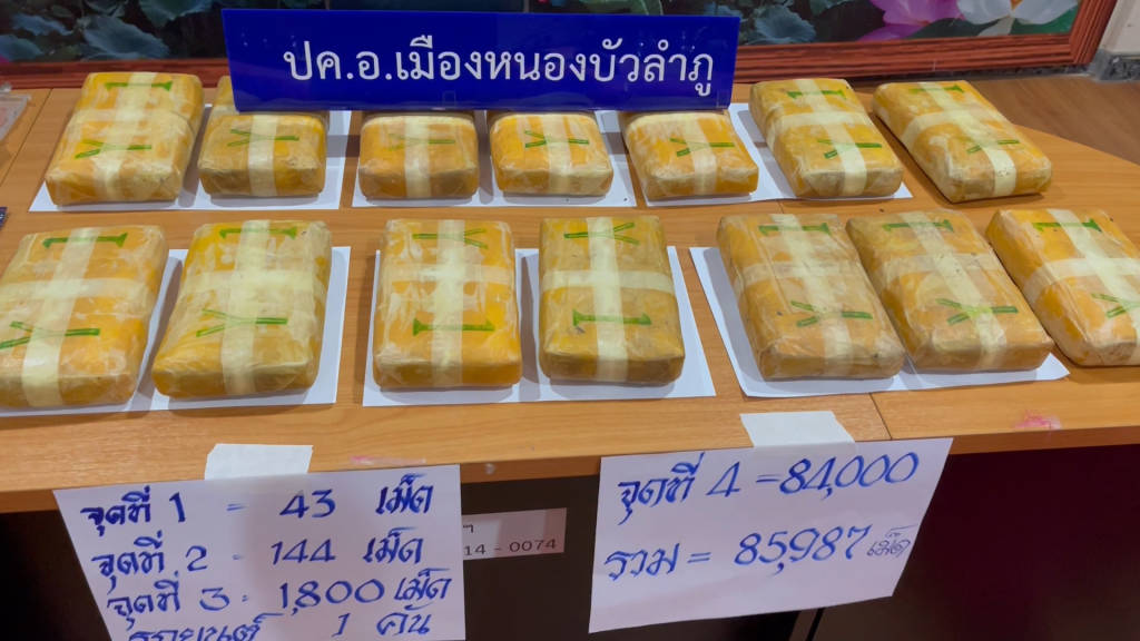 พร้อมกำลัง อส. ร่วมกันจับกุมนายเอ(นามสมมุติ)อายุ 42 ปี ที่อยู่ ต.นามะเฟือง อ.เมือง จ.หนองบัวลำภู ของกลางยาบ้า 85,987 เม็ด พร้อมผลตรวจปัสสาวะเป็นสีม่วง สืบเนื่องฝ่ายปกครองหนองบัวลำภูสืบทราบว่า นายเอ(นามสมมุติ)อายุ 42 ปี มีพฤติกรรมเสพ และจำหน่ายยาบ้าให้กับกลุ่มผู้ใช้แรงงานในเขตพื้นที่ตำบลนามะเฟือง อ.เมือง จ.หนองบัวลำภู โดยนายเอ(นามสมมุติ) เคยถูกจับในคดียาเสพติดมาแล้ว แต่อยู่ระหว่างประกันตัวในชั้นศาล โดยจะใช้รถยนต์เก๋ง ยี่ห้อโตโยต้า สีดำ ออกไปรับยาเสพติดและนำไปจำหน่าย เจ้าหน้าที่ฝ่ายปกครอง